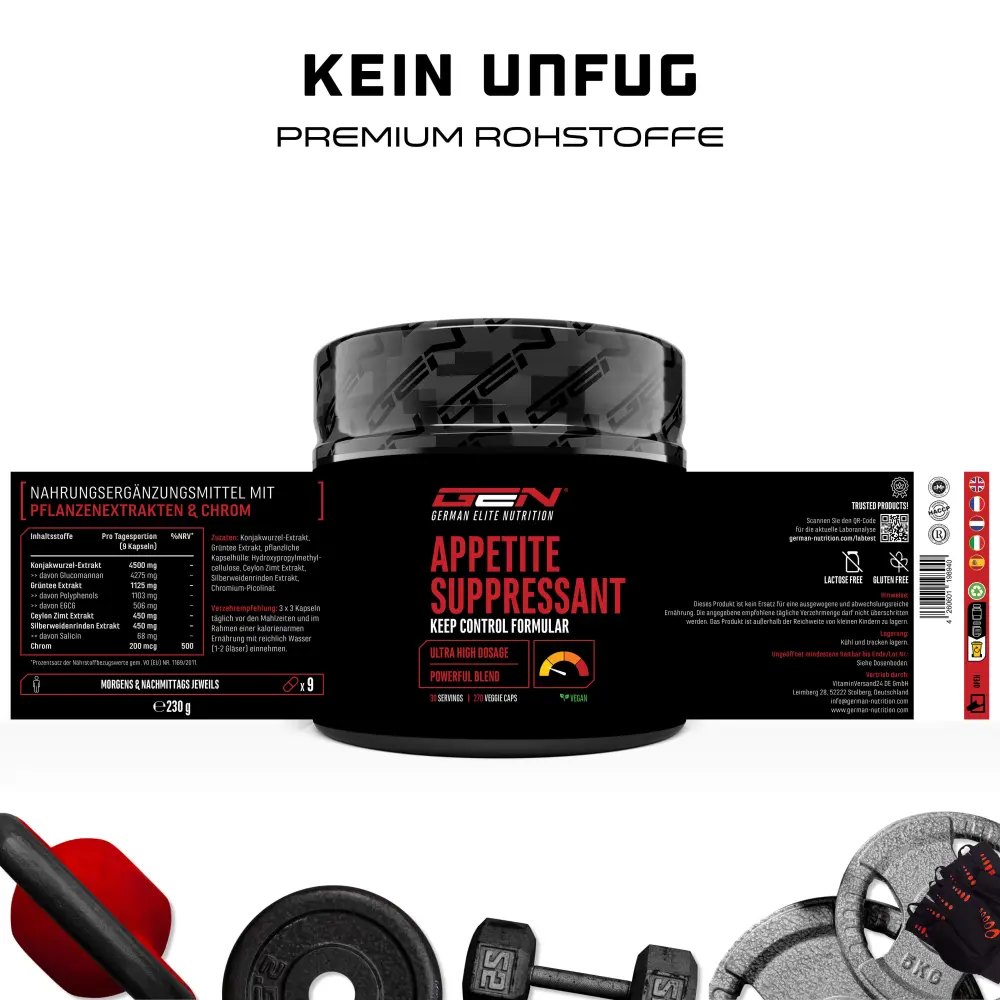GEN Appetite Control is an appetite suppressant and helps you to control your appetite through a combination of 4 high-quality plant extracts together with the trace element chromium.