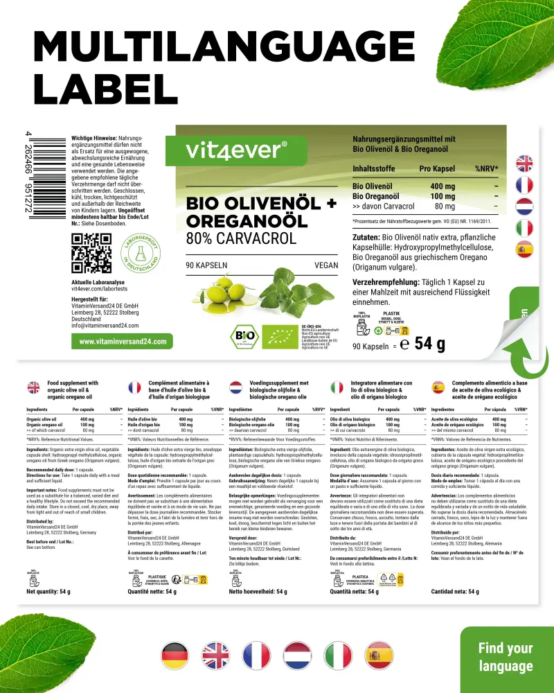 La combinación de aceite de oliva virgen extra ecológico y aceite de orégano ecológico te ofrece los beneficios de ambos aceites en una sola cápsula.