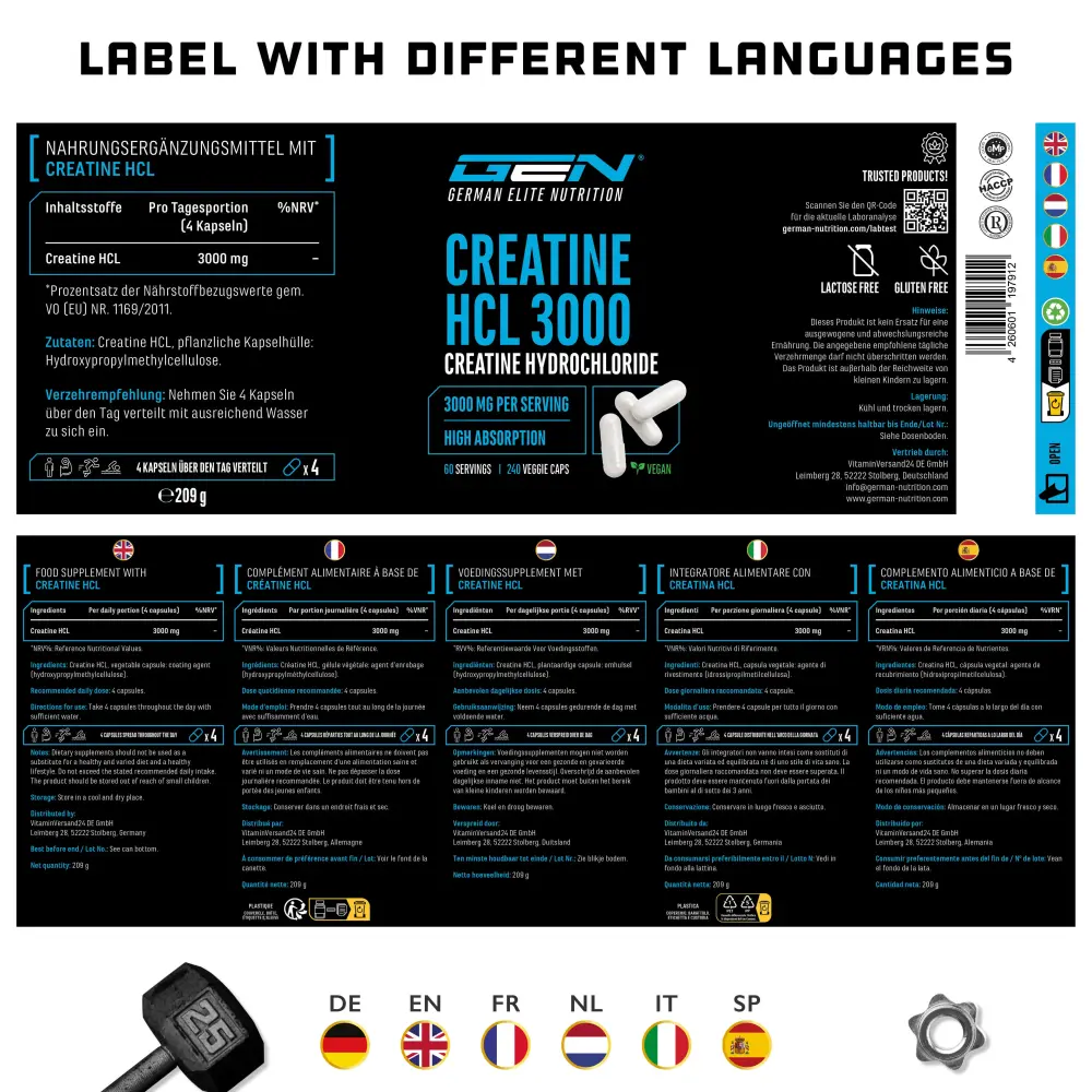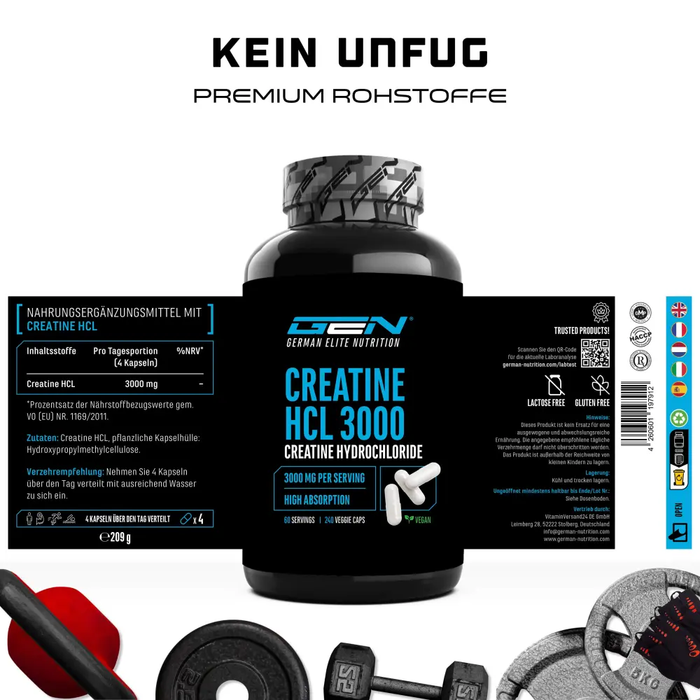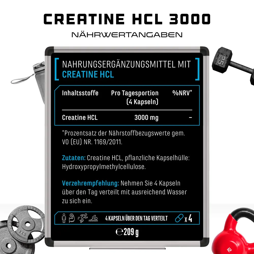 La créatine HCL est un produit haut de gamme qui vous apporte 3000 mg de chlorhydrate de créatine (HCL) pur par dose journalière recommandée.
