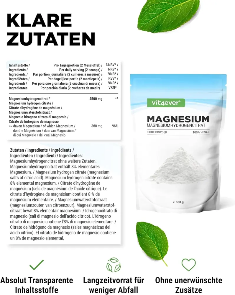 Le citrate acide de magnésium est un sel de magnésium de l’acide citrique et correspond à la plus haute qualité et pureté.