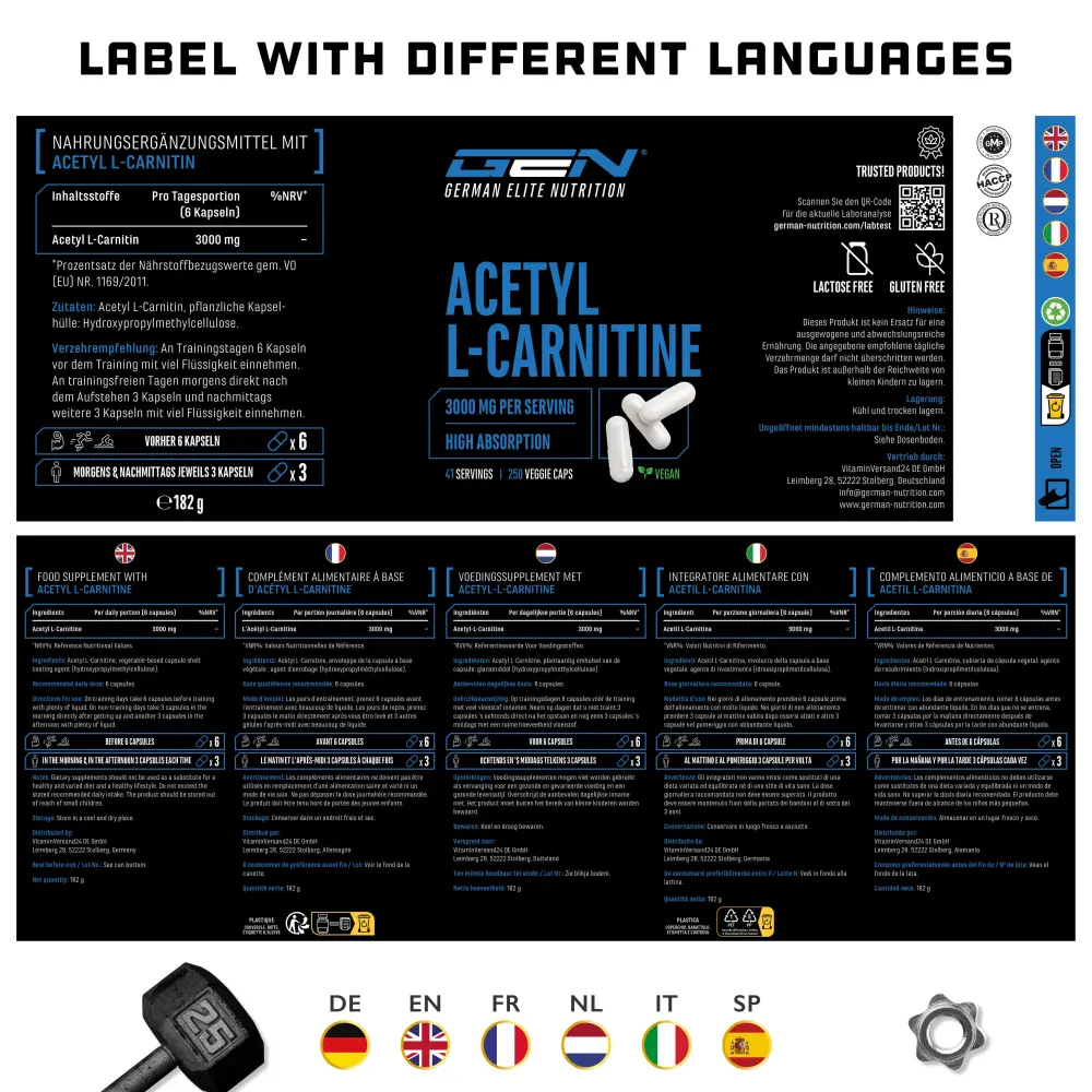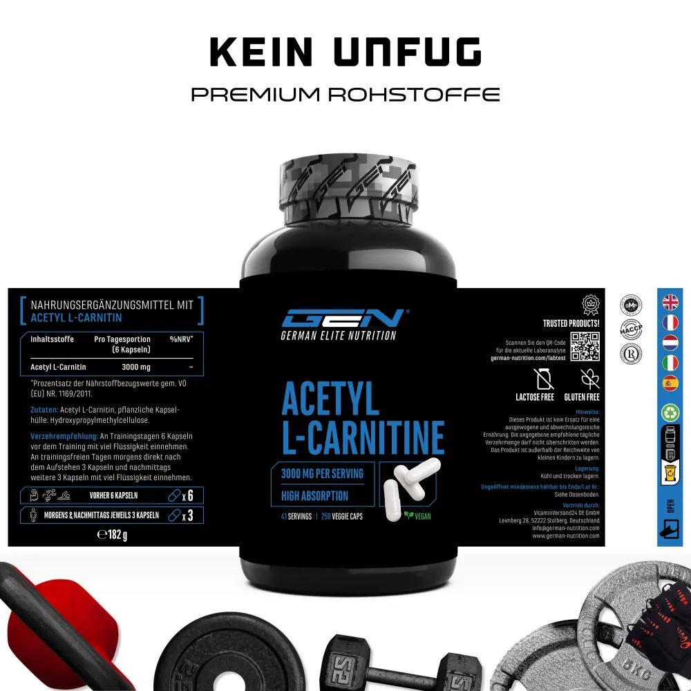 Le proprietà dell’acetil L-carnitina comprendono la metabolizzazione degli alimenti e la loro conversione in energia. Rispetto alla L-carnitina, l’acetil L-carnitina può essere assorbita più velocemente e più efficacemente dalle cellule e quindi utilizzata più efficacemente dall’organismo.