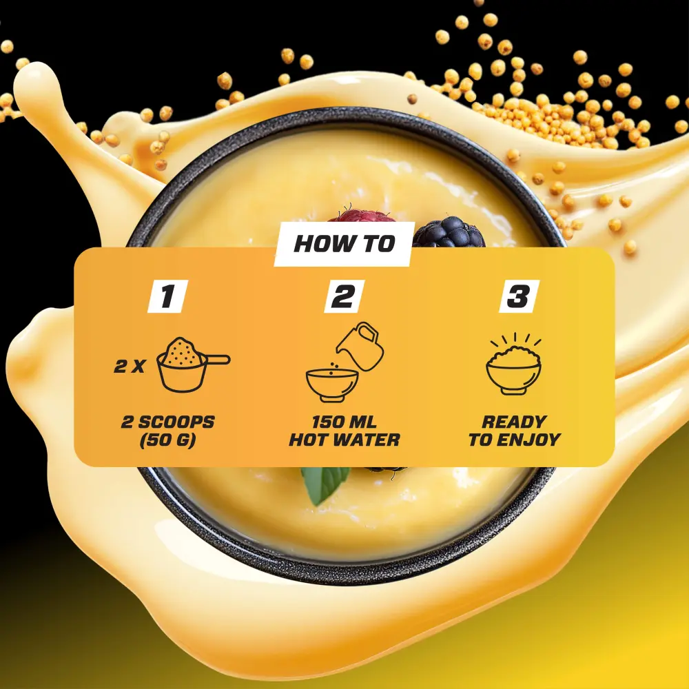 Mescolare 50 g di budino di mais Instanz (2 misurini) con 150 ml di acqua bollente e lasciare gonfiare per 2 minuti.
