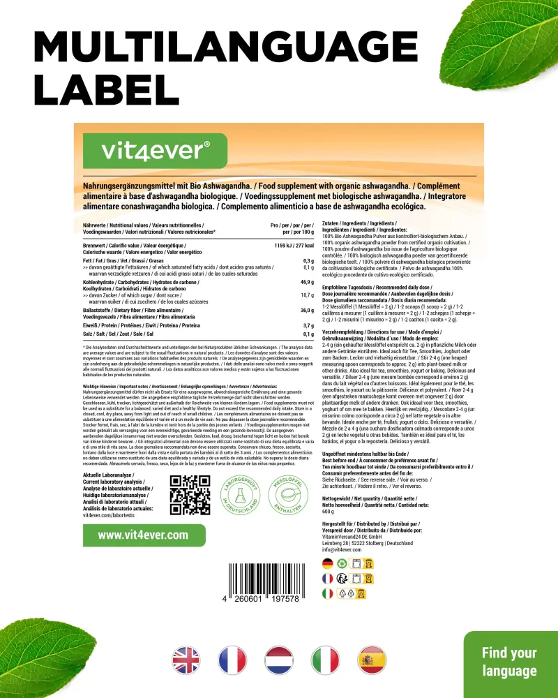 Polvere di radice di ashwagandha al 100% senza additivi.