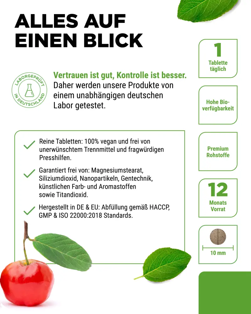 Ferro bisglicinato, estratto di acerola, cellulosa microcristallina.