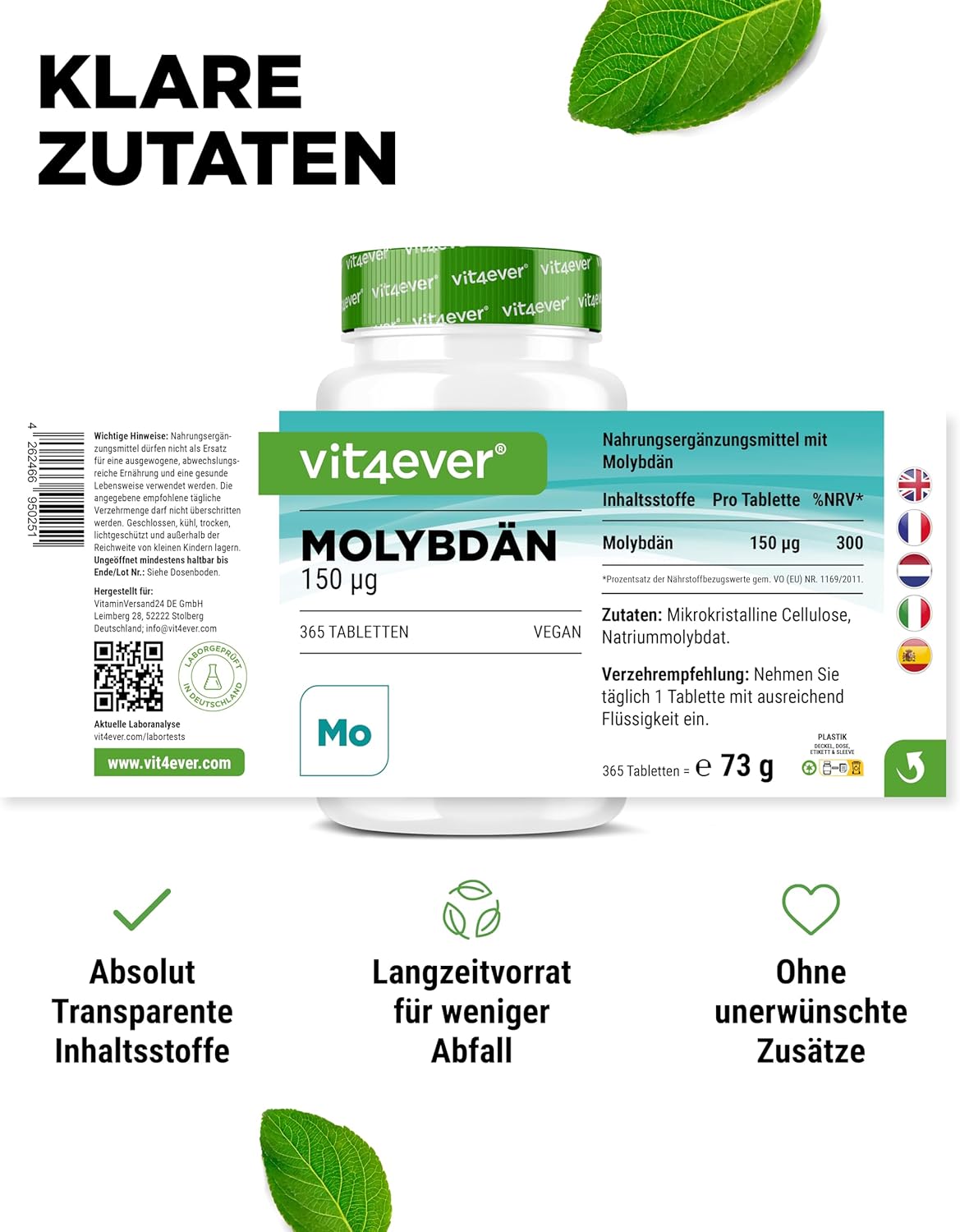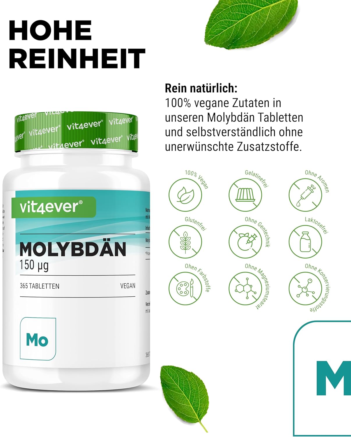 Cellulosa microcristallina (riempitivo), molibdato di sodio (contiene il 39% di molibdeno).