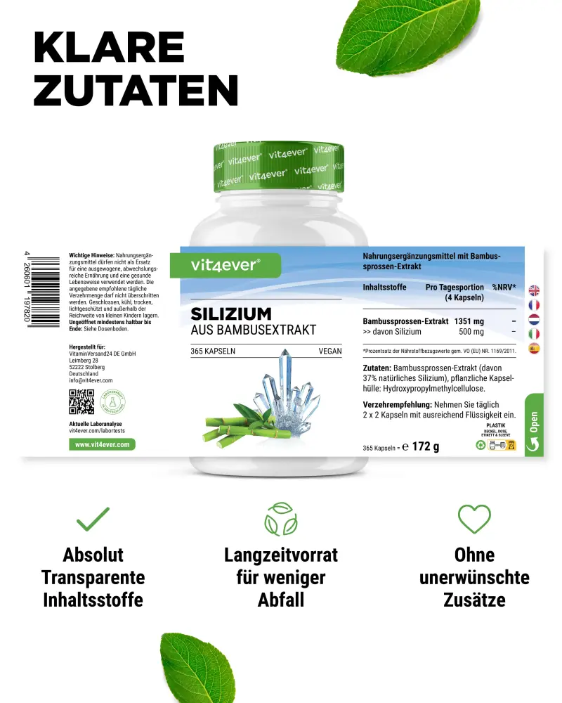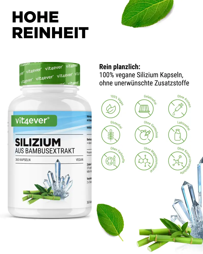 Il silicio di Vit4ever ti offre silicio organico di alta qualità ricavato dai germogli di bambù, una fonte vegetale e al tempo stesso una delle più ricche di questo minerale.