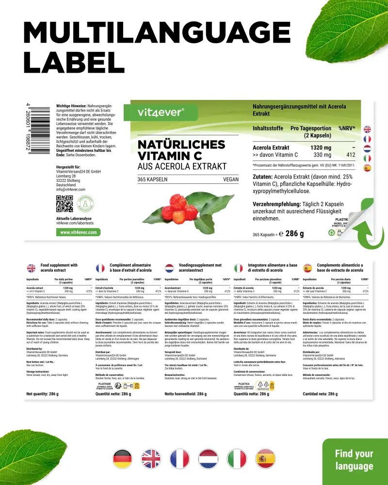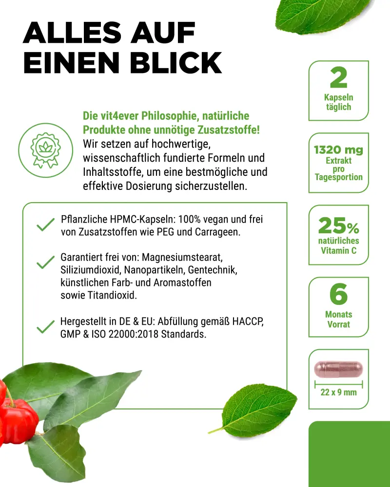 Als poeder van de acerola vrucht biedt het ook een zeer hoge biologische beschikbaarheid.