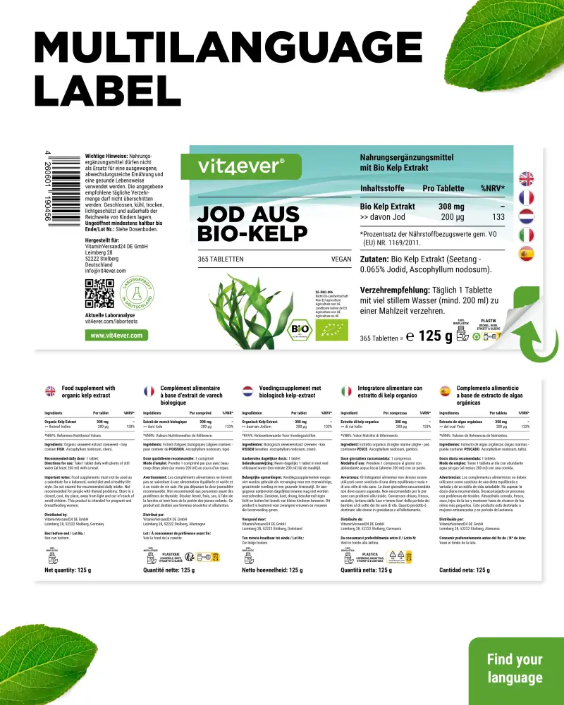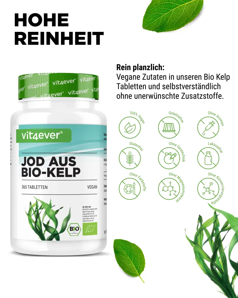 Biologische kelp is een bruine alg met een bijzonder hoog gehalte aan natuurlijk → jodium, dat ook zeer biologisch beschikbaar is.