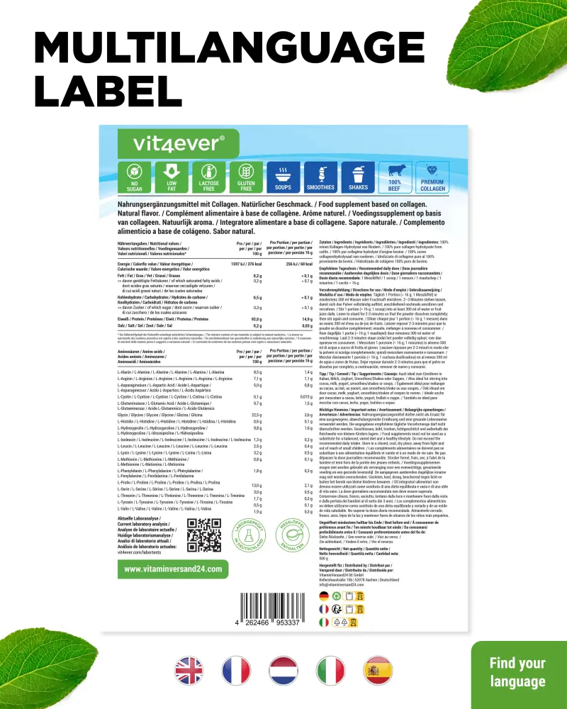 Door hydrolyse wordt het Premium Peptolab-Light collageenhydrolysaat al afgebroken in kleine lipiden en kan het beter door het lichaam worden opgenomen.