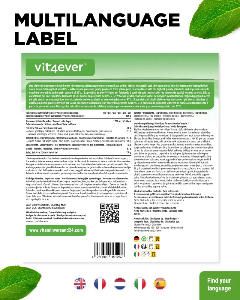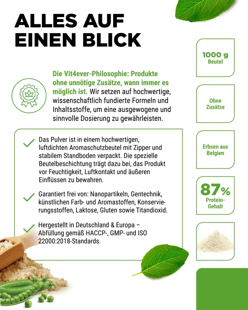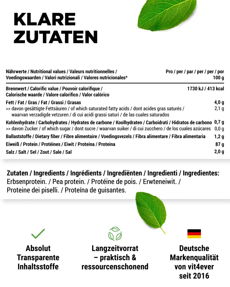100% erwteneiwit zonder toevoegingen.