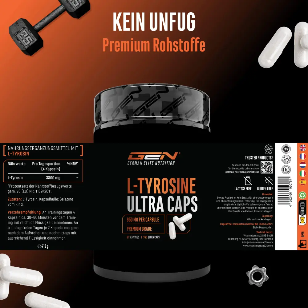 Tyrosin ist mit anderen Aminosäuren oder Pre-Workout-Produkten kombinierbar.