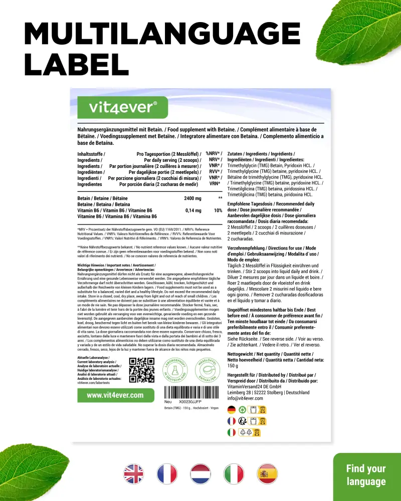 Trimethylglycin (TMG) Betain, Pyridoxin HCL.