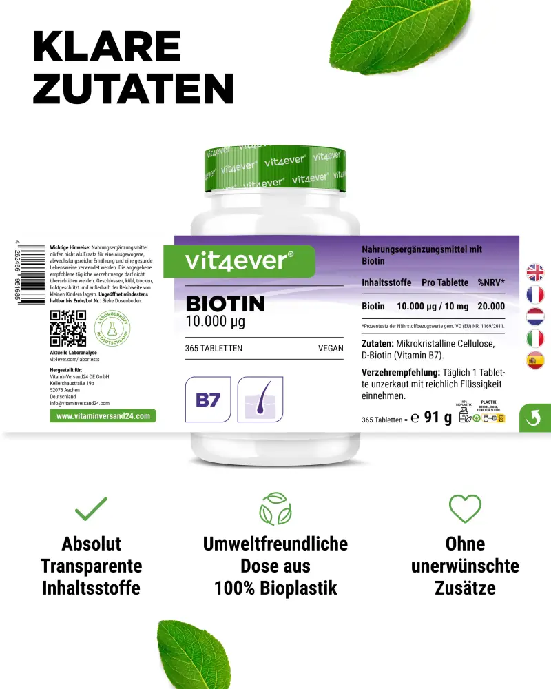 Mikrokristalline Cellulose, D-Biotin (Vitamin B7).