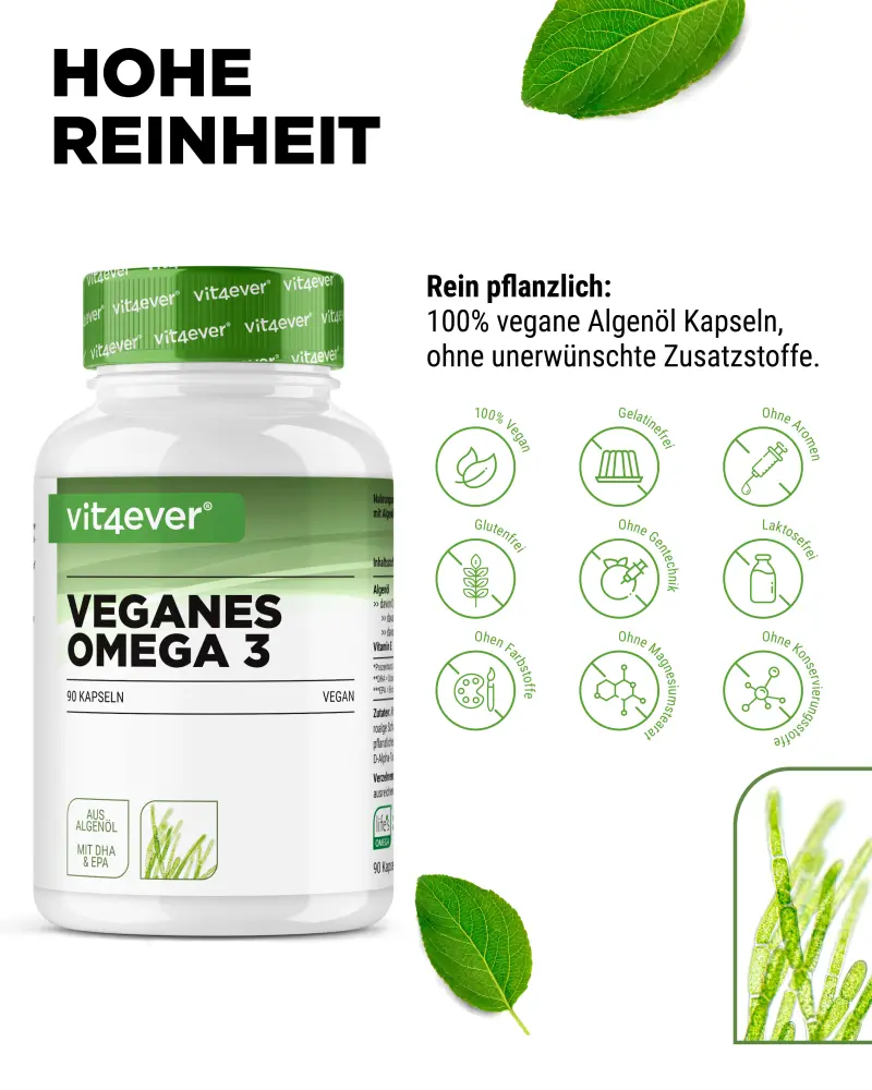 Algen bieten hier eine optimale Lösung, da diese zu 100 % vegetarisch und vegan sind.