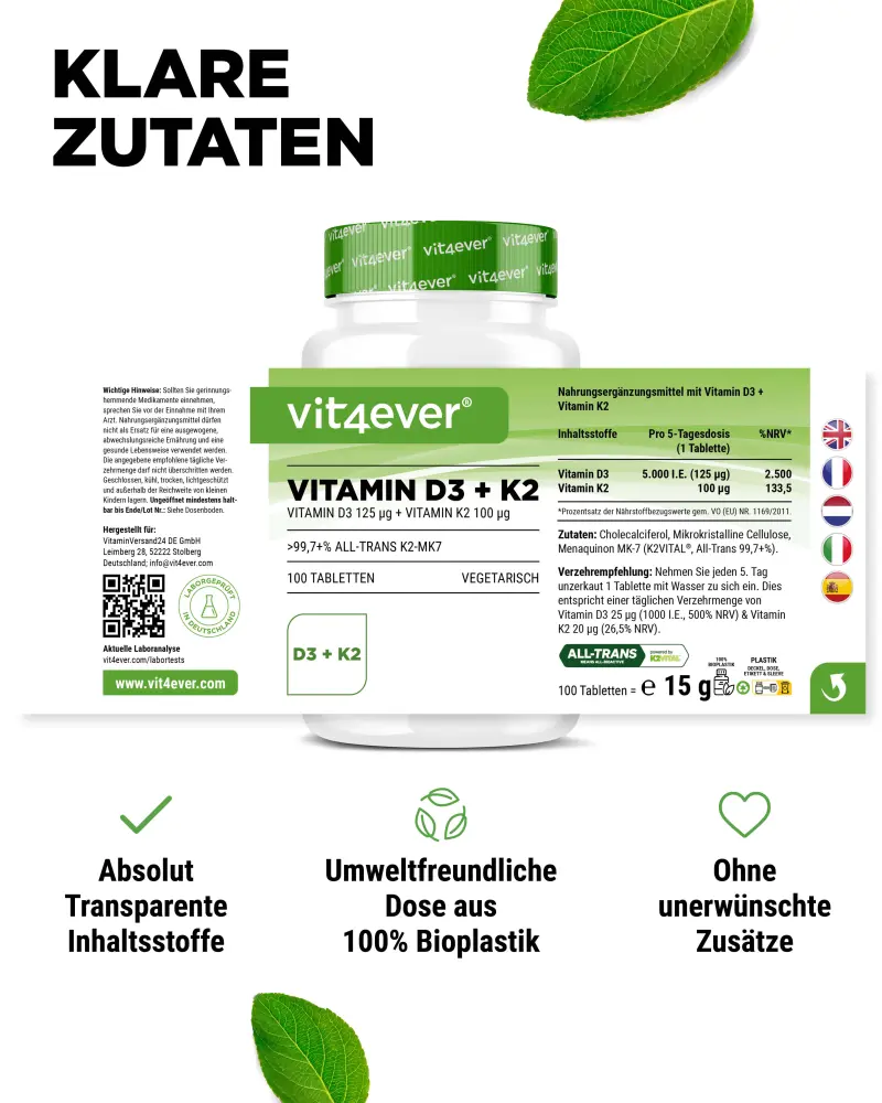 Vitamin D3 5000 I.E. + K2 – 100 Tabletten