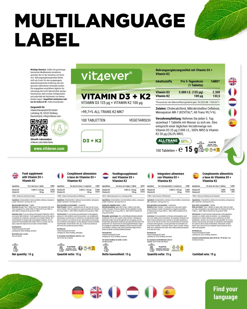 Optimal ergänzt durch → Vitamin K2, welches einen optimalen Partner des D-Vitamins darstellt, ist Vitamin D3 5000 I.E. + K2 ideal für die Erhaltung eines gesunden Vitamin D Spiegels im Körper geeignet.