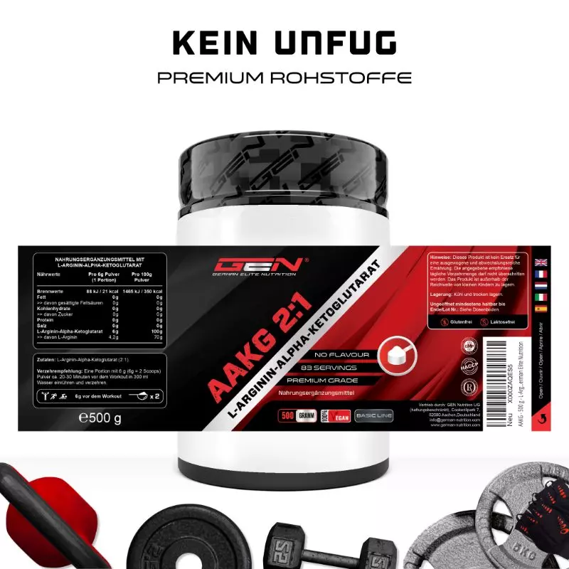 A AAKG é produzida pela combinação de arginina e alfa-cetoglutarato. Esta combinação aumenta a absorção até 50 por cento em comparação com a arginina normal.