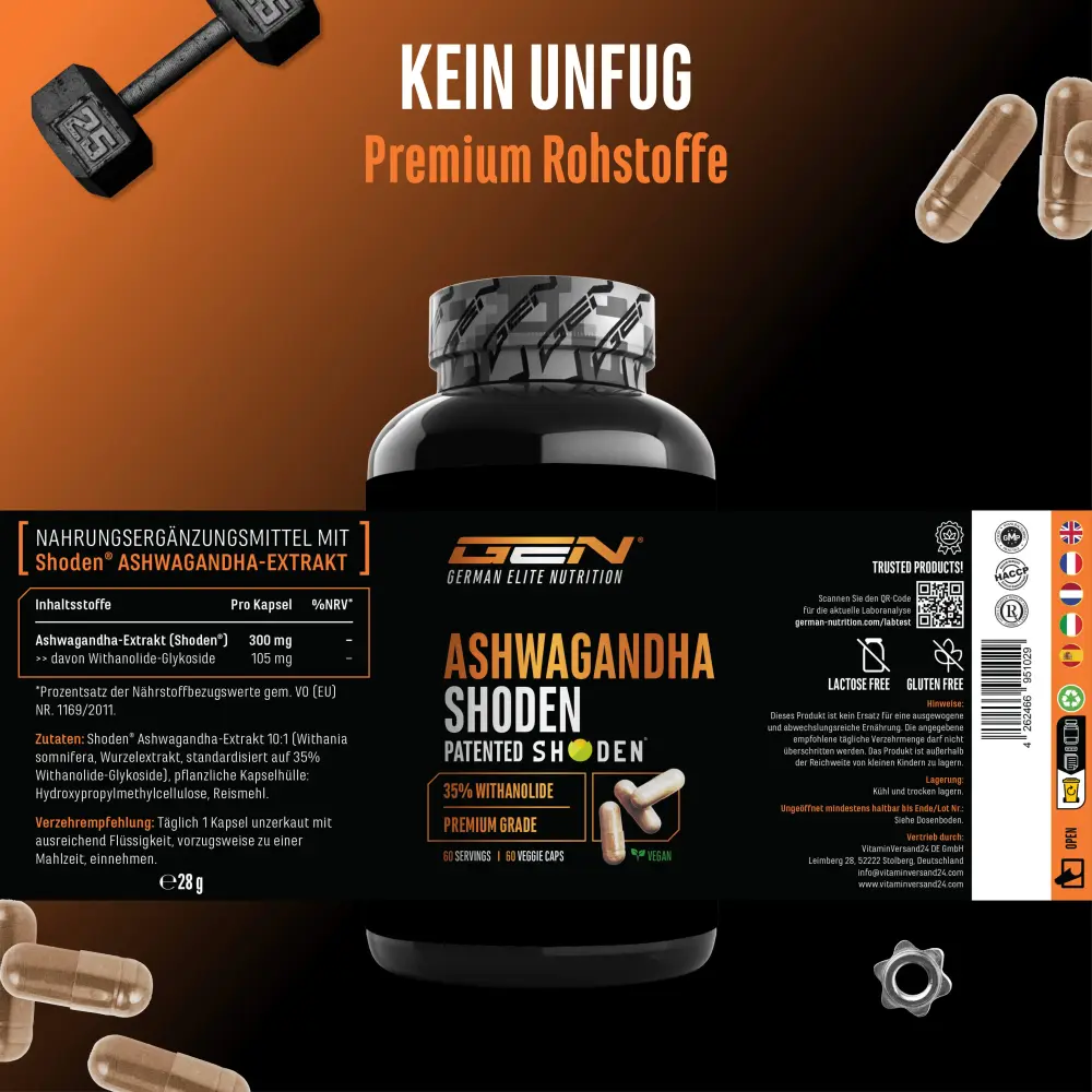 O Shoden® é uma das formas mais modernas e altamente padronizadas de ashwagandha e contém 35 % de glicosídeos de withanólidos, o que é muito mais do que num extrato de raiz padrão normal.