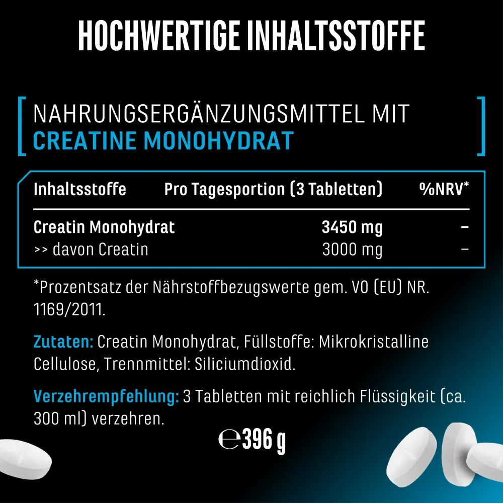 Monohidrato de creatina, excipientes: celulose microcristalina, antiaglomerante: dióxido de silício.