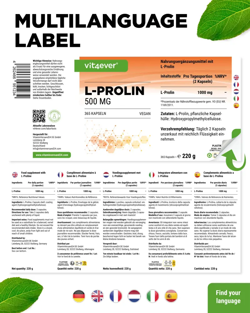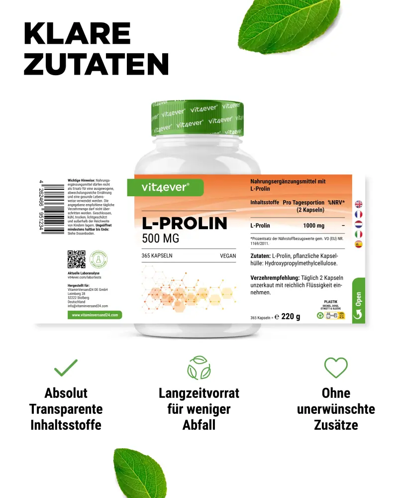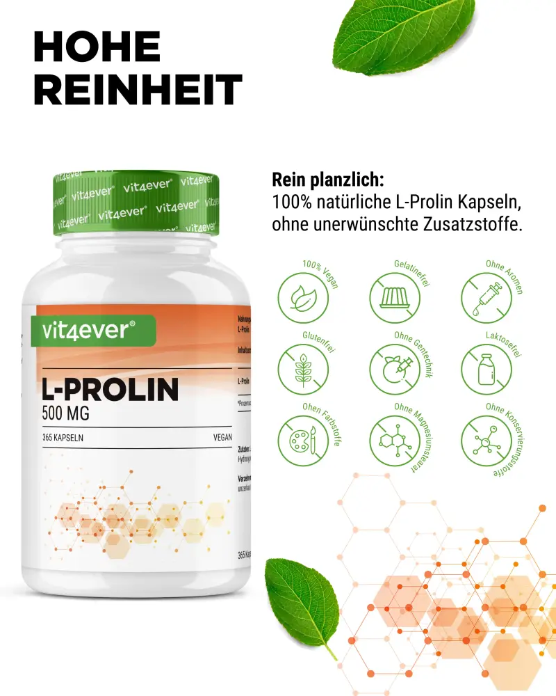 L-prolina, agente de revestimento: hidroxipropilmetilcelulose (de origem vegetal).