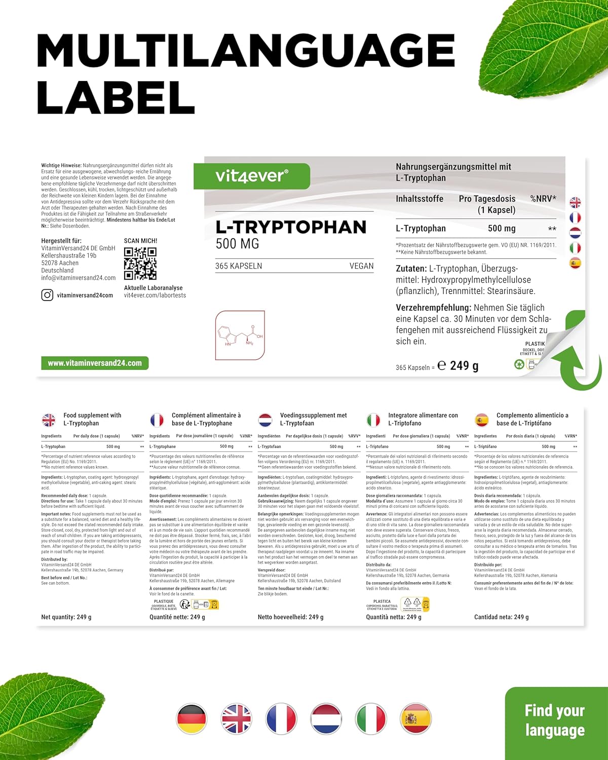 L-Tryptophan – 365 cápsulas