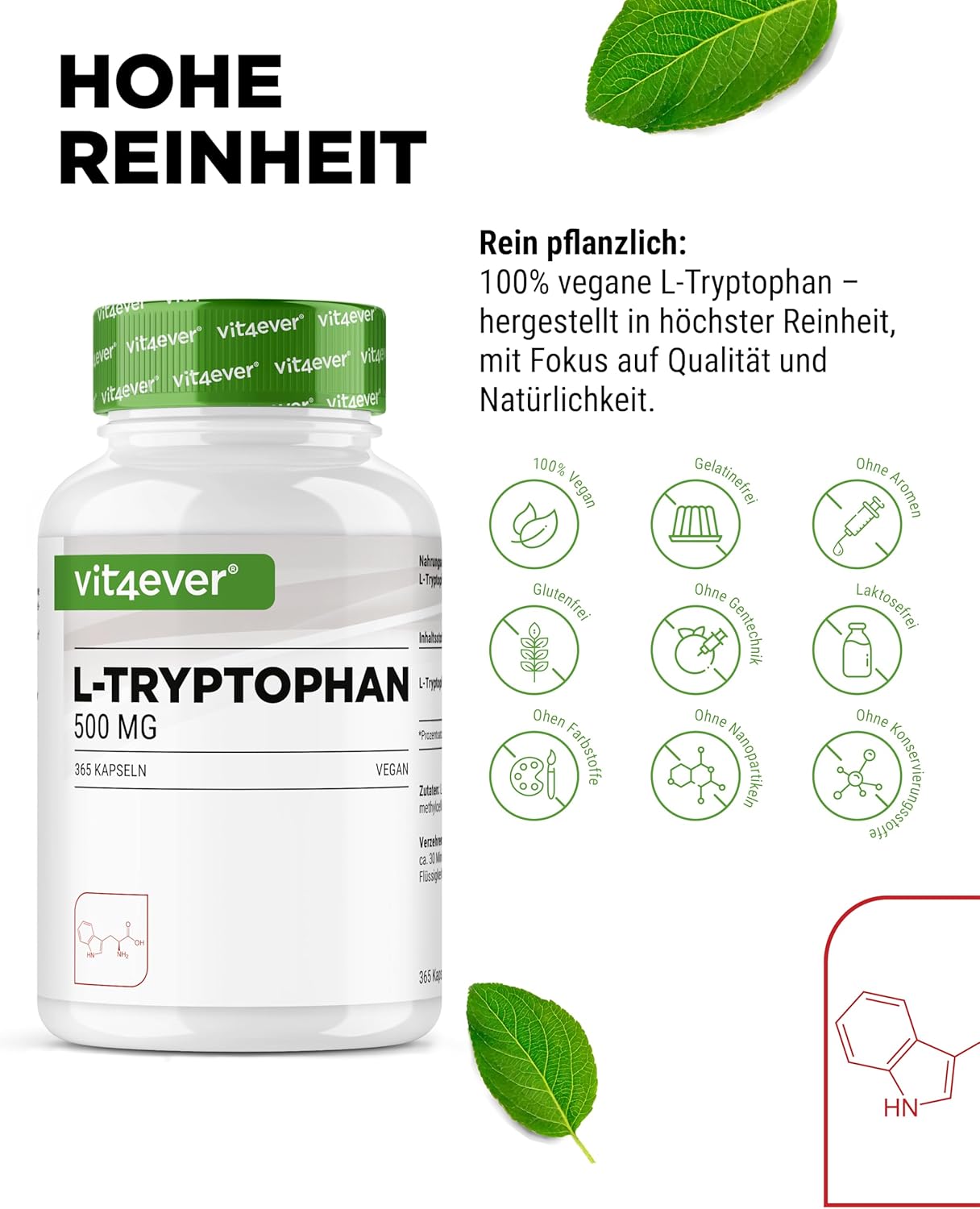 L-triptofano, agente de revestimento hidroxipropilmetilcelulose (vegetal).