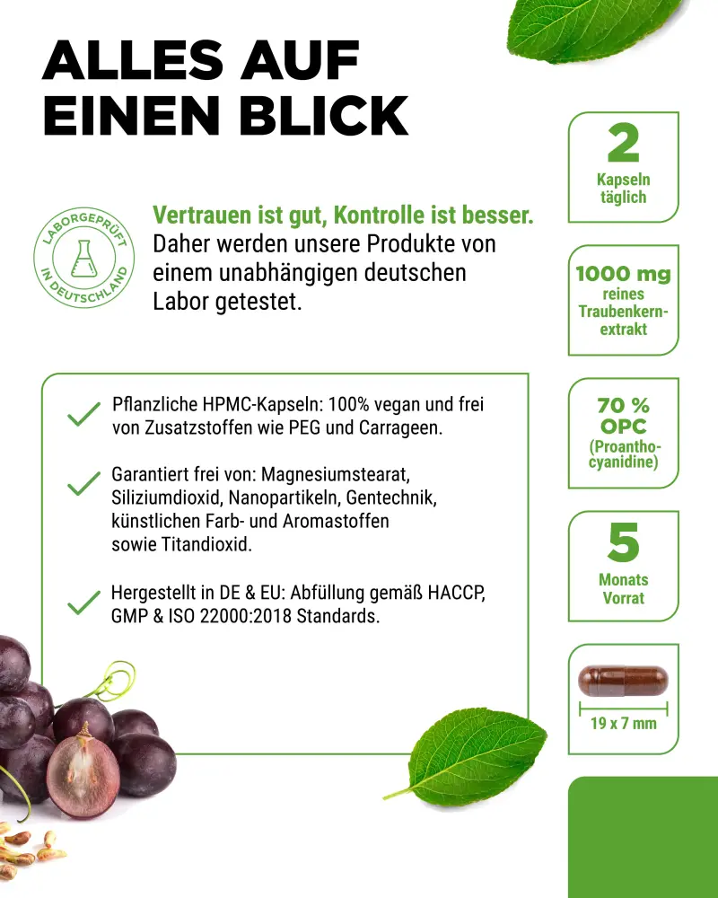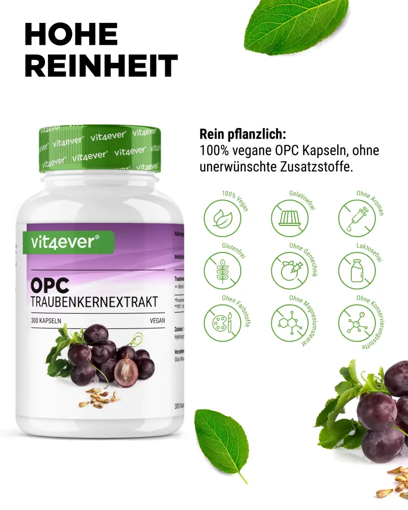 → Segundo o método Bate/Smith: 450 mg de OPC (95% de proantocianidinas oligoméricas)