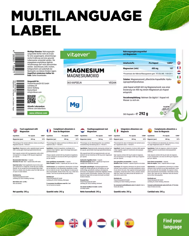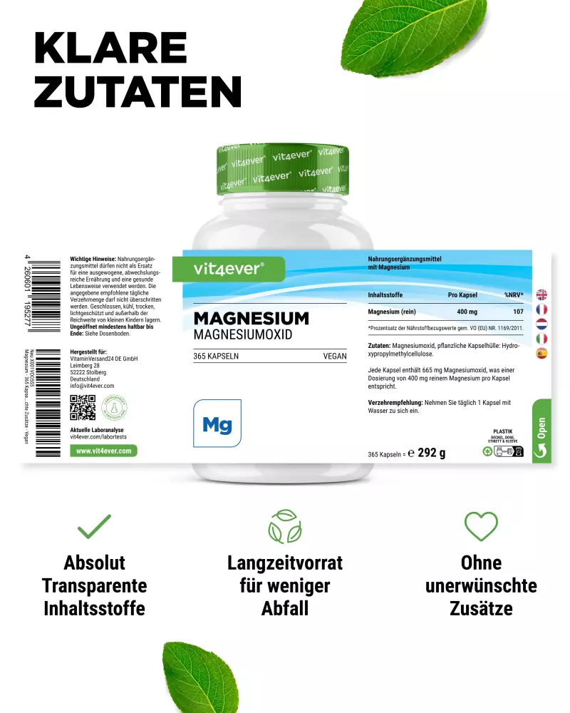 O óxido de magnésio tem a mesma elevada bioequivalência e facilidade de utilização que o citrato de magnésio, mas, de acordo com um estudo científico de Shechter et al. (2012), oferece um armazenamento intracelular de magnésio significativamente melhor do que o citrato de magnésio após várias semanas de ingestão.