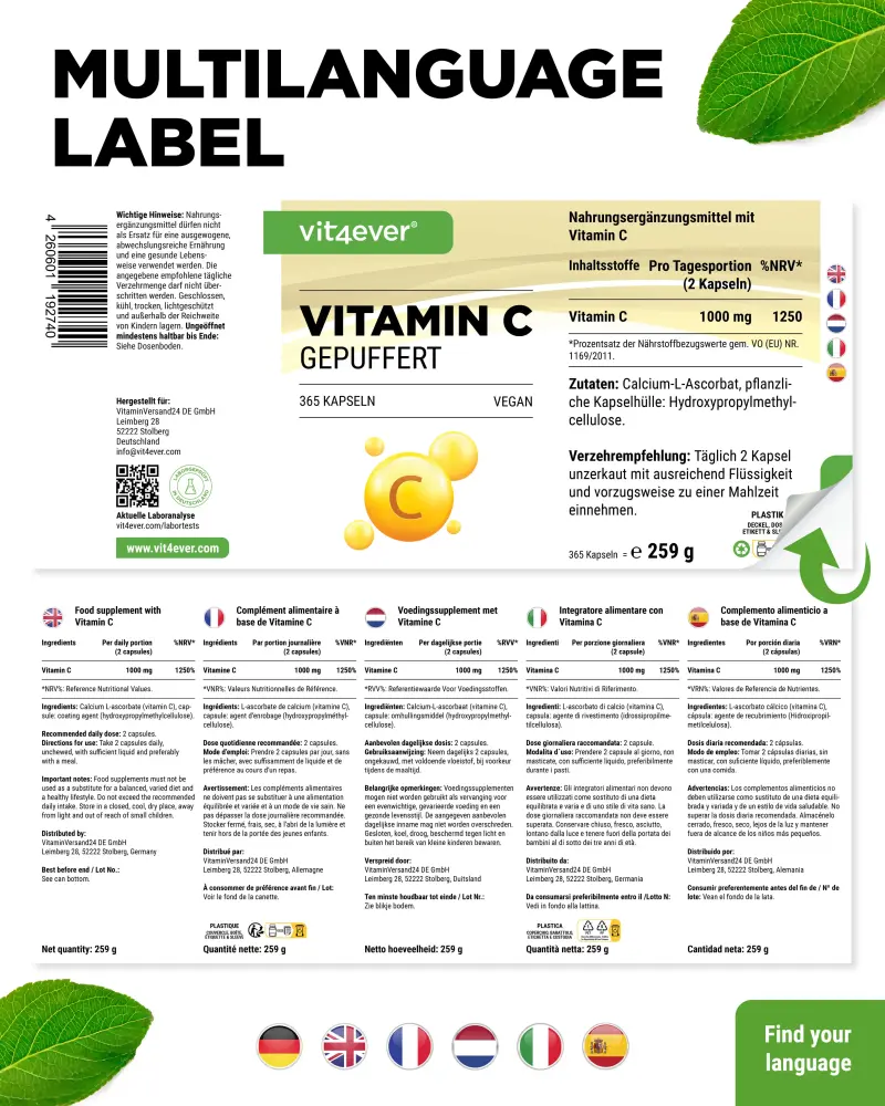 Vitamina C tamponada – 365 cápsulas
