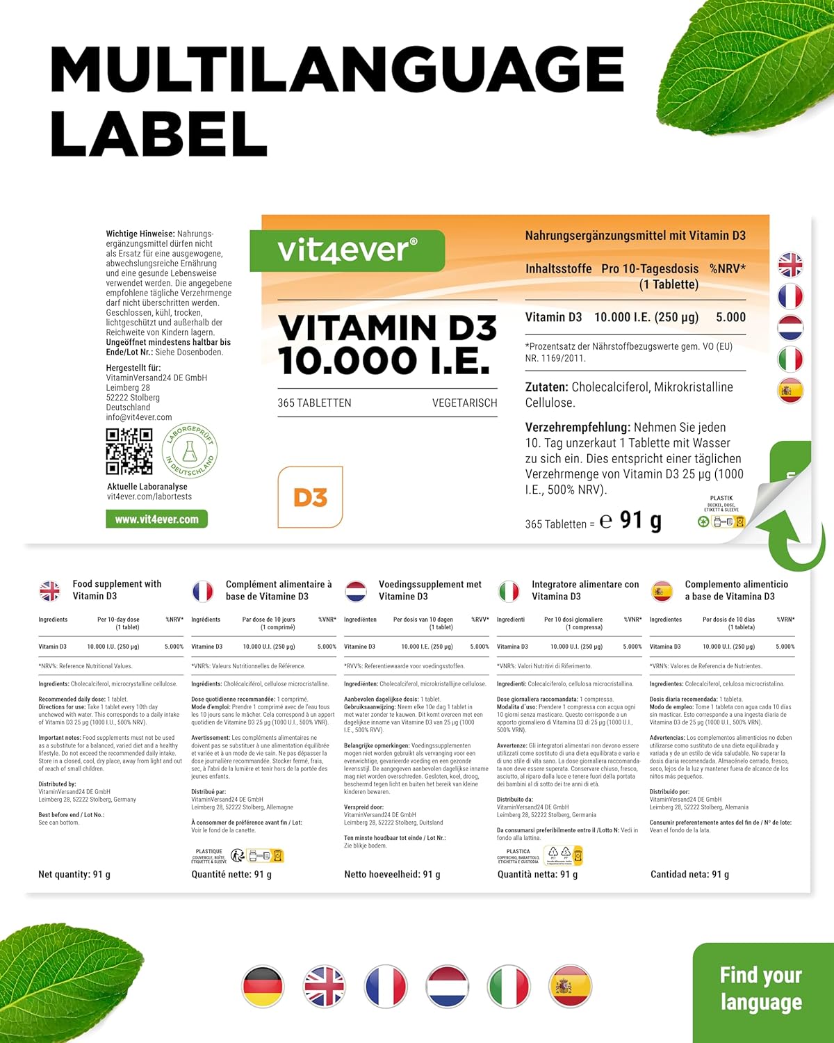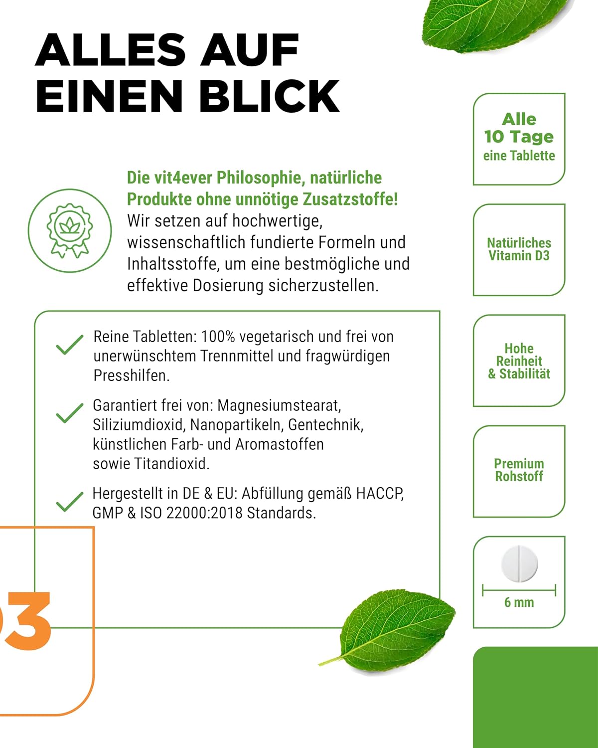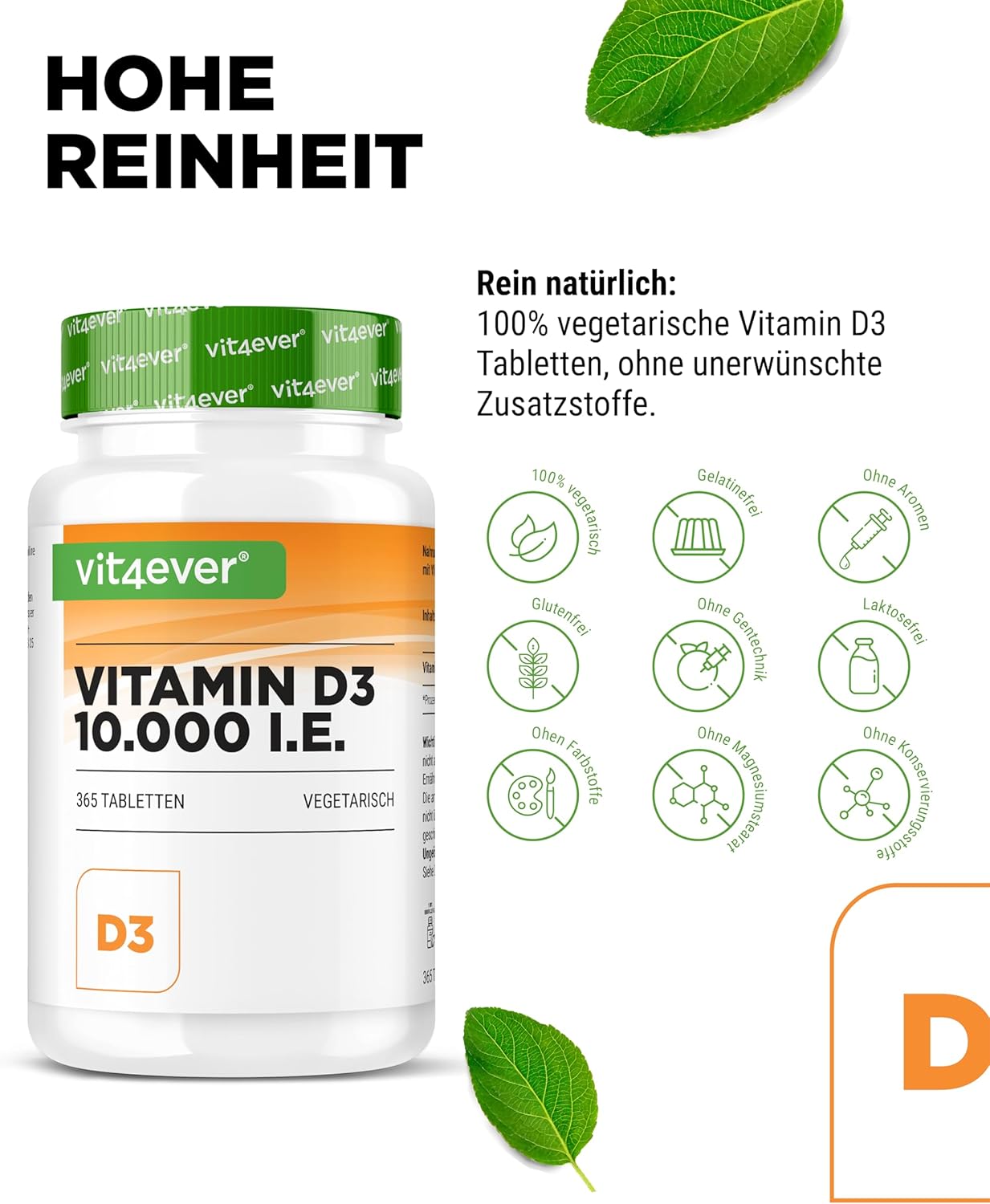 Colecalciferol (vitamina D3), carbonato de cálcio (auxiliar de prensagem), celulose microcristalina (agente de volume), mistura de extrato de arroz (agente antiaglomerante).